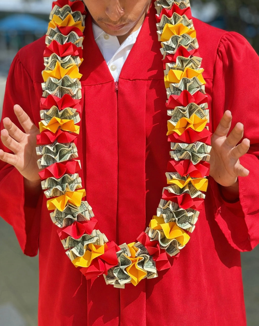 A Unique Luxury Money Lei - This vibrate lei is sure to put a smile back on your graduate's face! Each necklace is hand folded with real cash and bright colored cardstock paper. We pride ourselves on providing the customer with exactly what they desire.